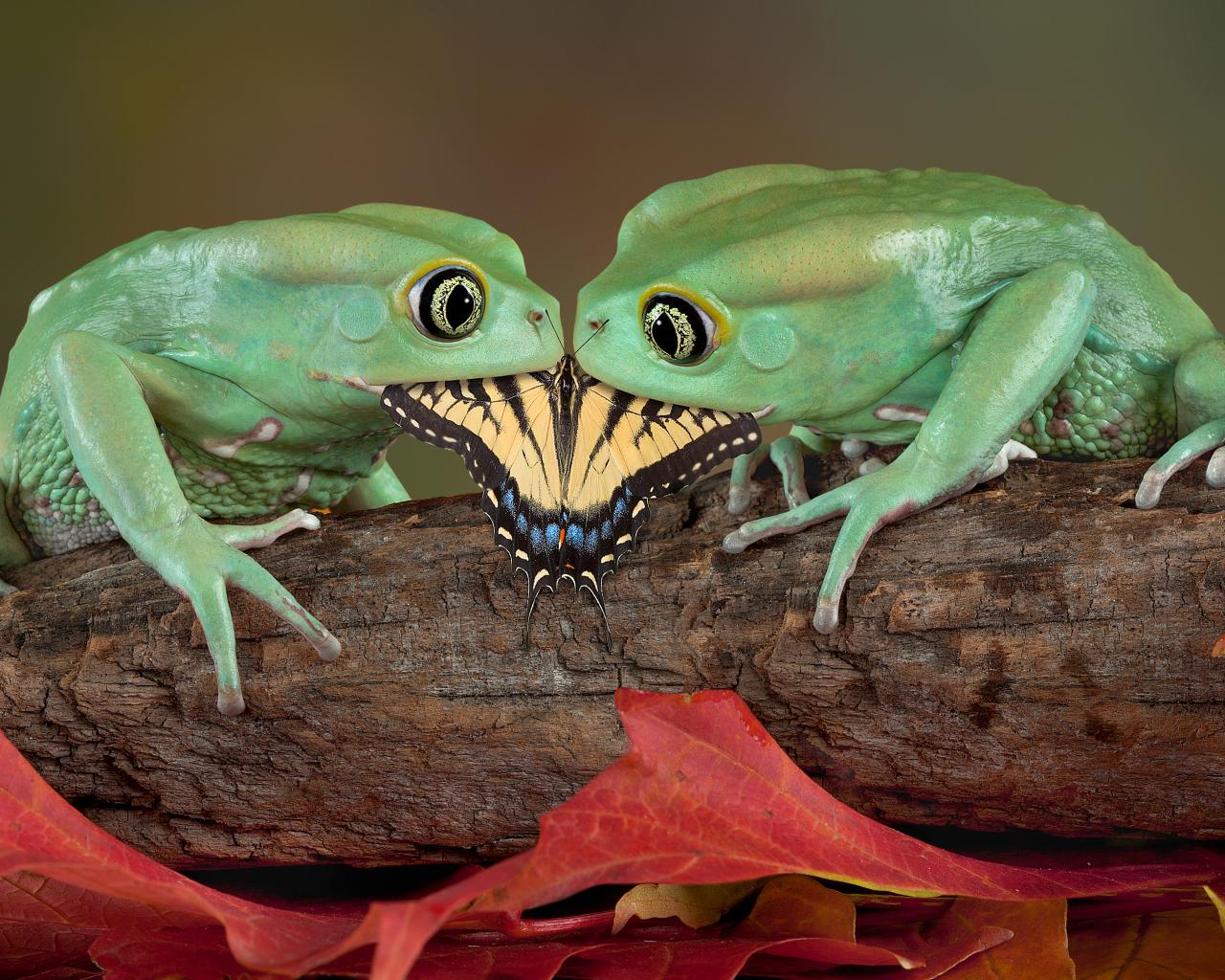 » Wallpaper Two green frogs eat butterfly
