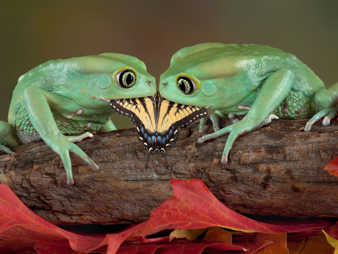 Wallpaper Green frog Red-eyed Frogs on a flower