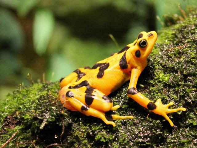 Wallpaper Yellow frog sitting on a wet moss