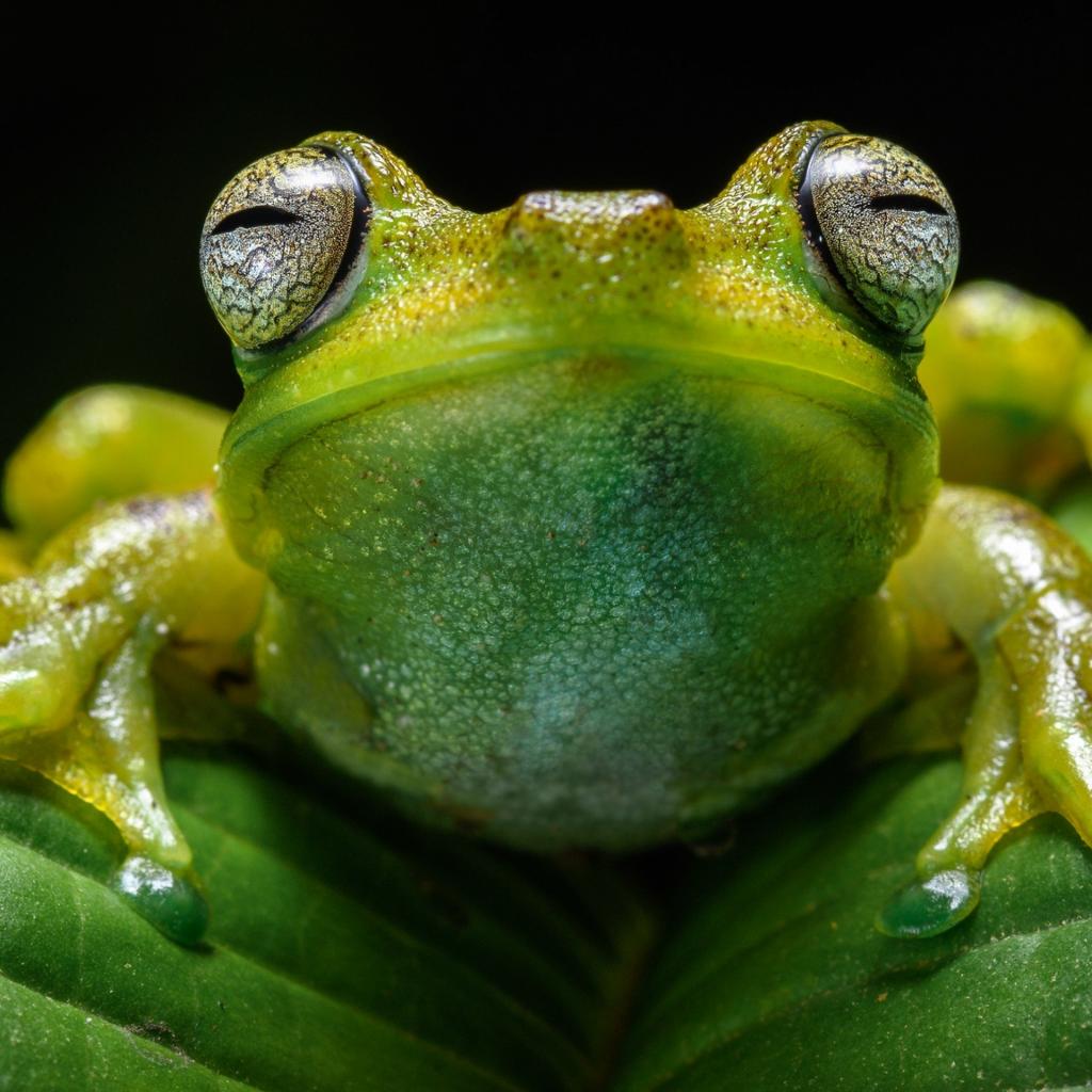 Wallpaper Frog on green leaf close up