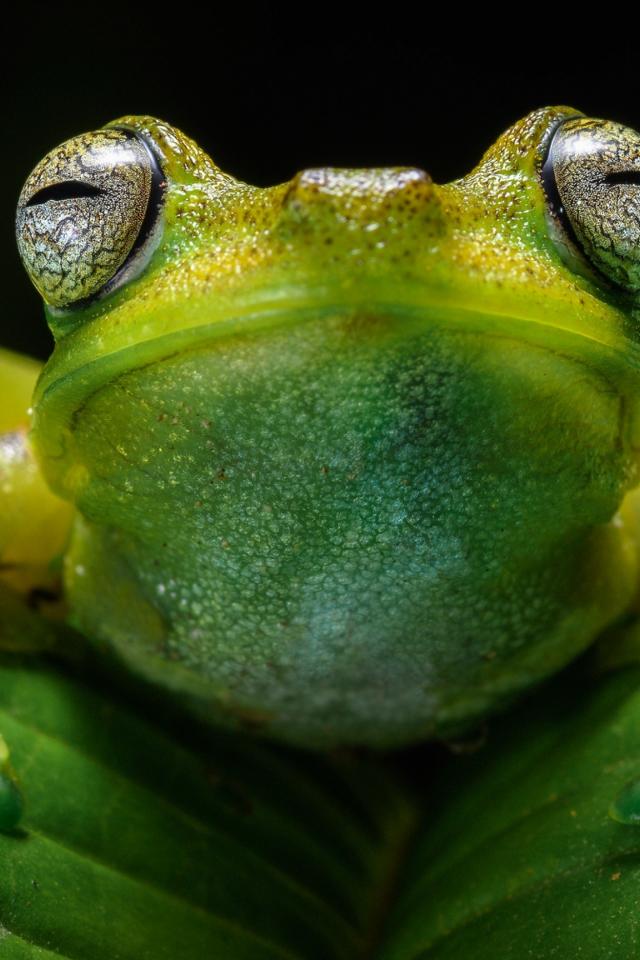 Wallpaper Frog on green leaf close up