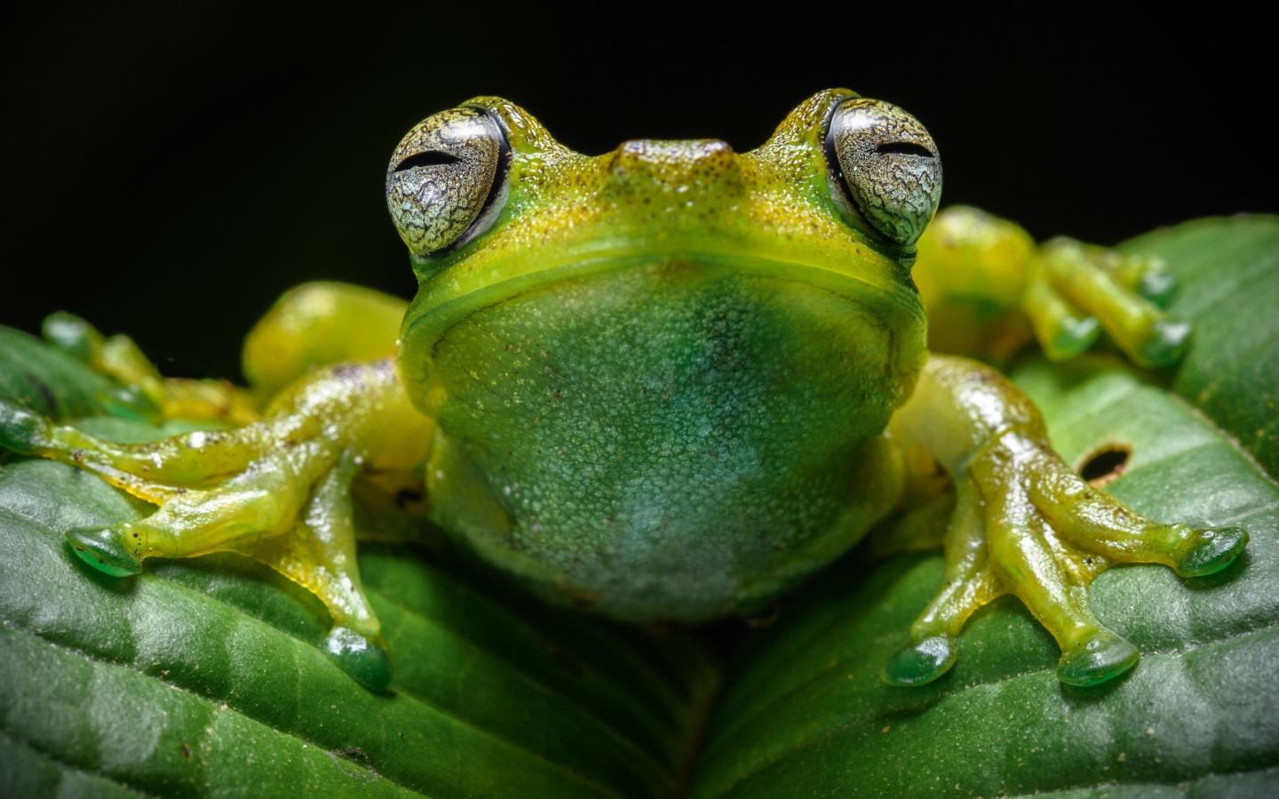 Wallpaper Frog on green leaf close up