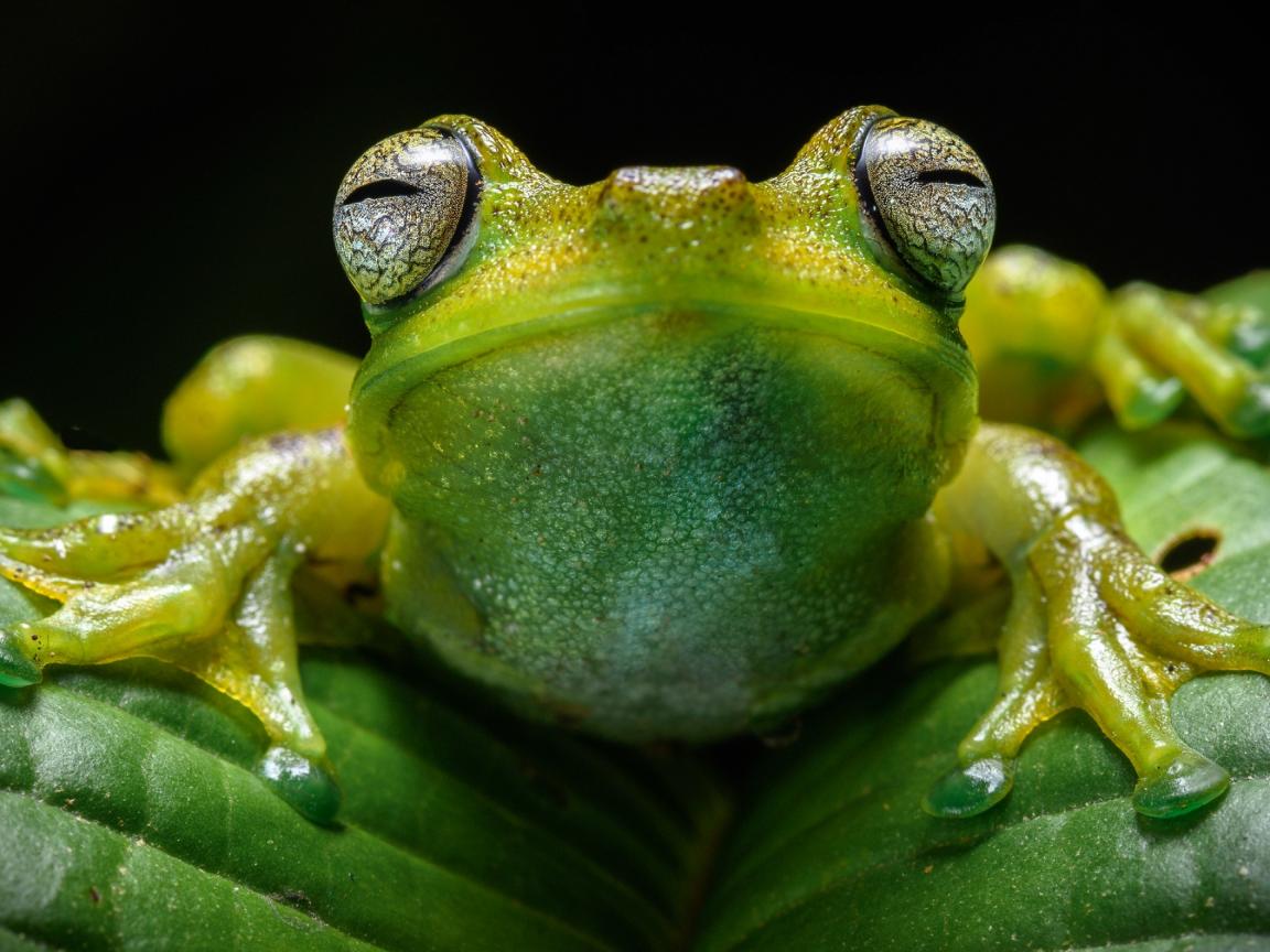 Wallpaper Frog on green leaf close up