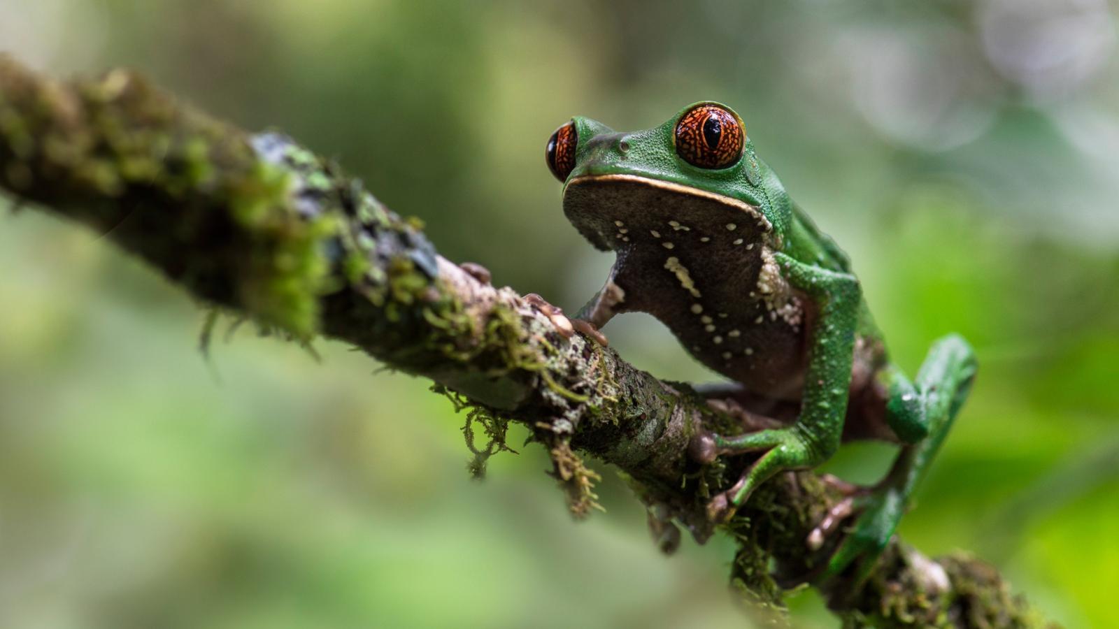 Wallpaper Green frog sitting on a branch