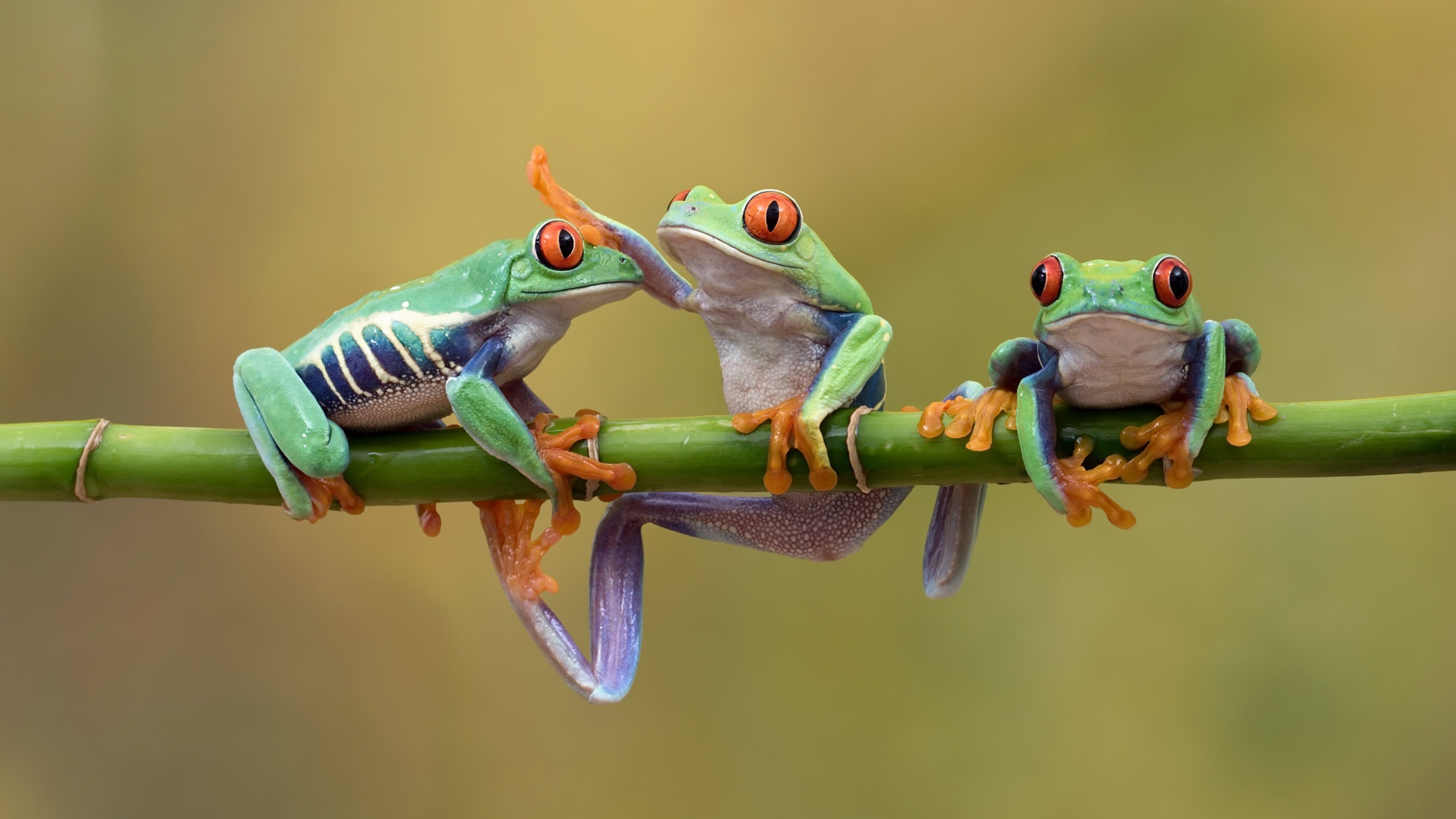 Wallpaper Three red-eyed tree frogs on a branch