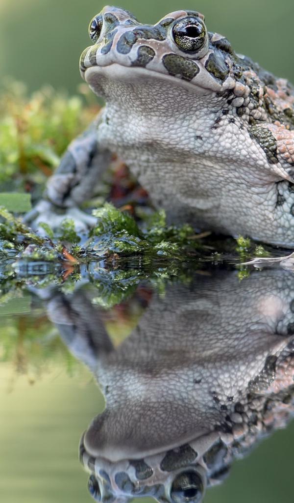 Wallpaper Big frog sits on seaweed in a pond