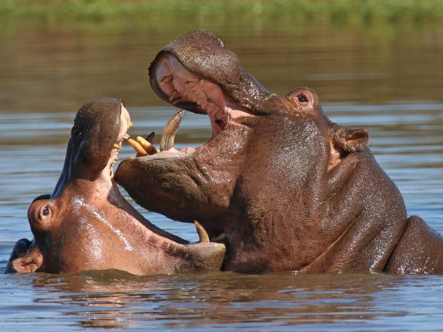 Wallpaper Two hippos are fighting in the water