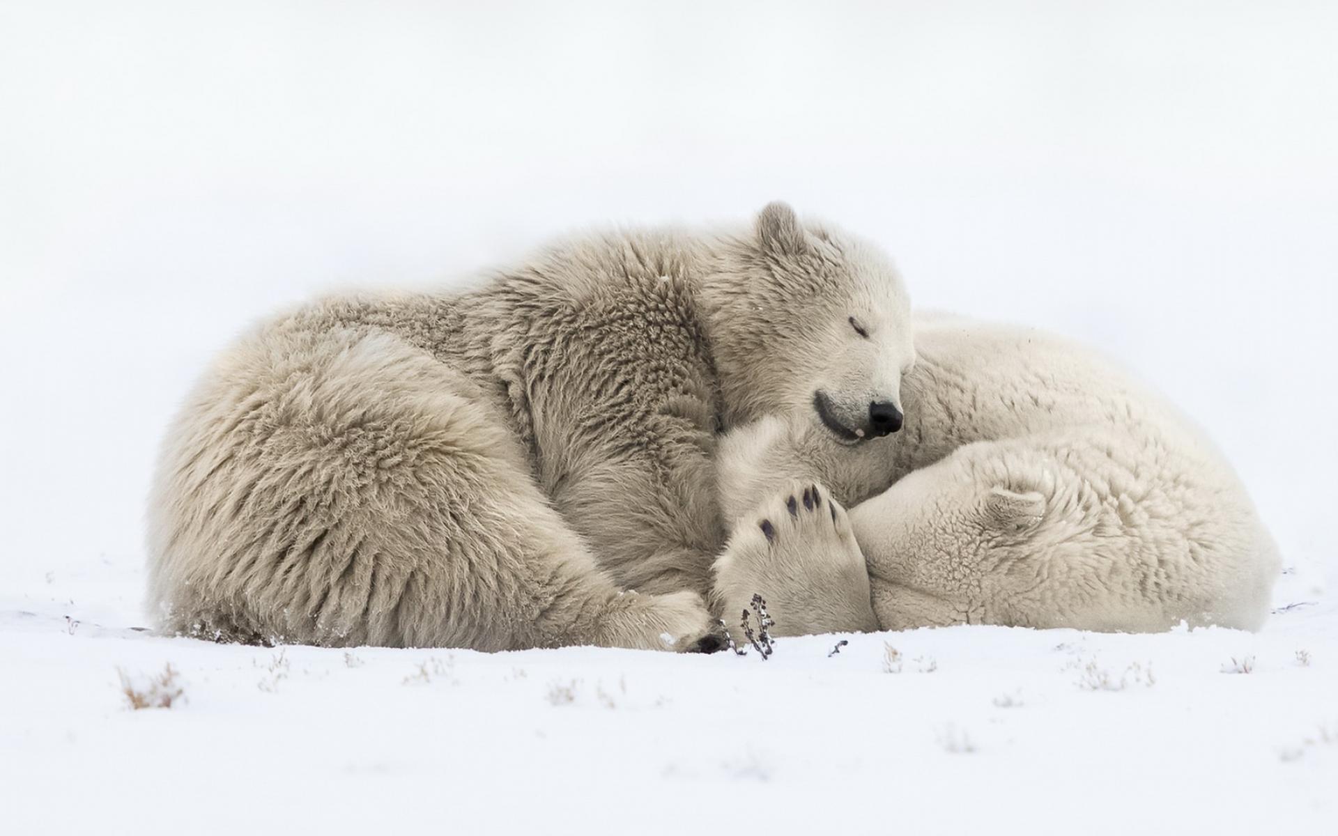 Wallpaper Two big polar bears are sleeping on the snow