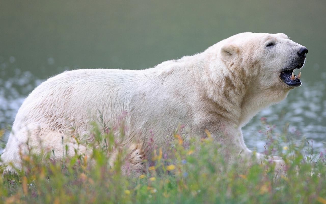 Wallpaper Large polar bear near the water
