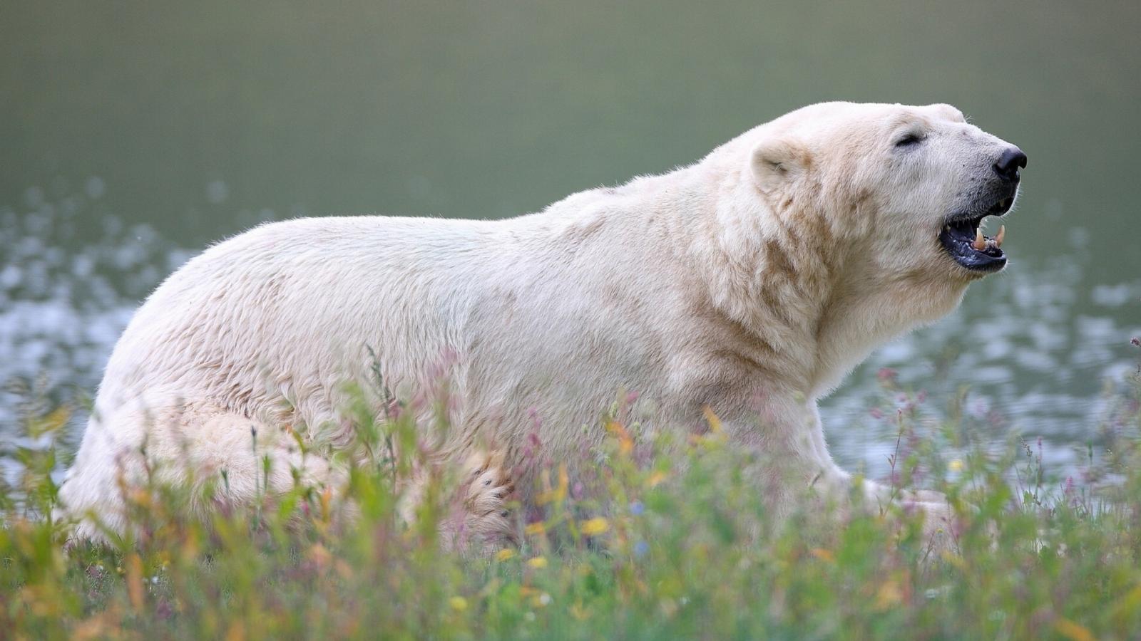 Wallpaper Large polar bear near the water