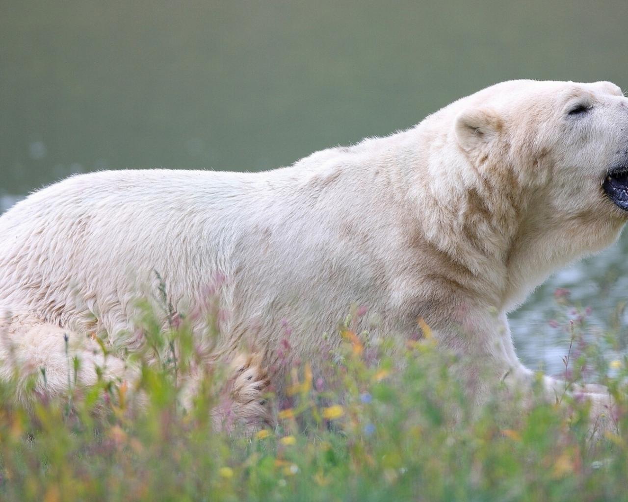 Wallpaper Large polar bear near the water