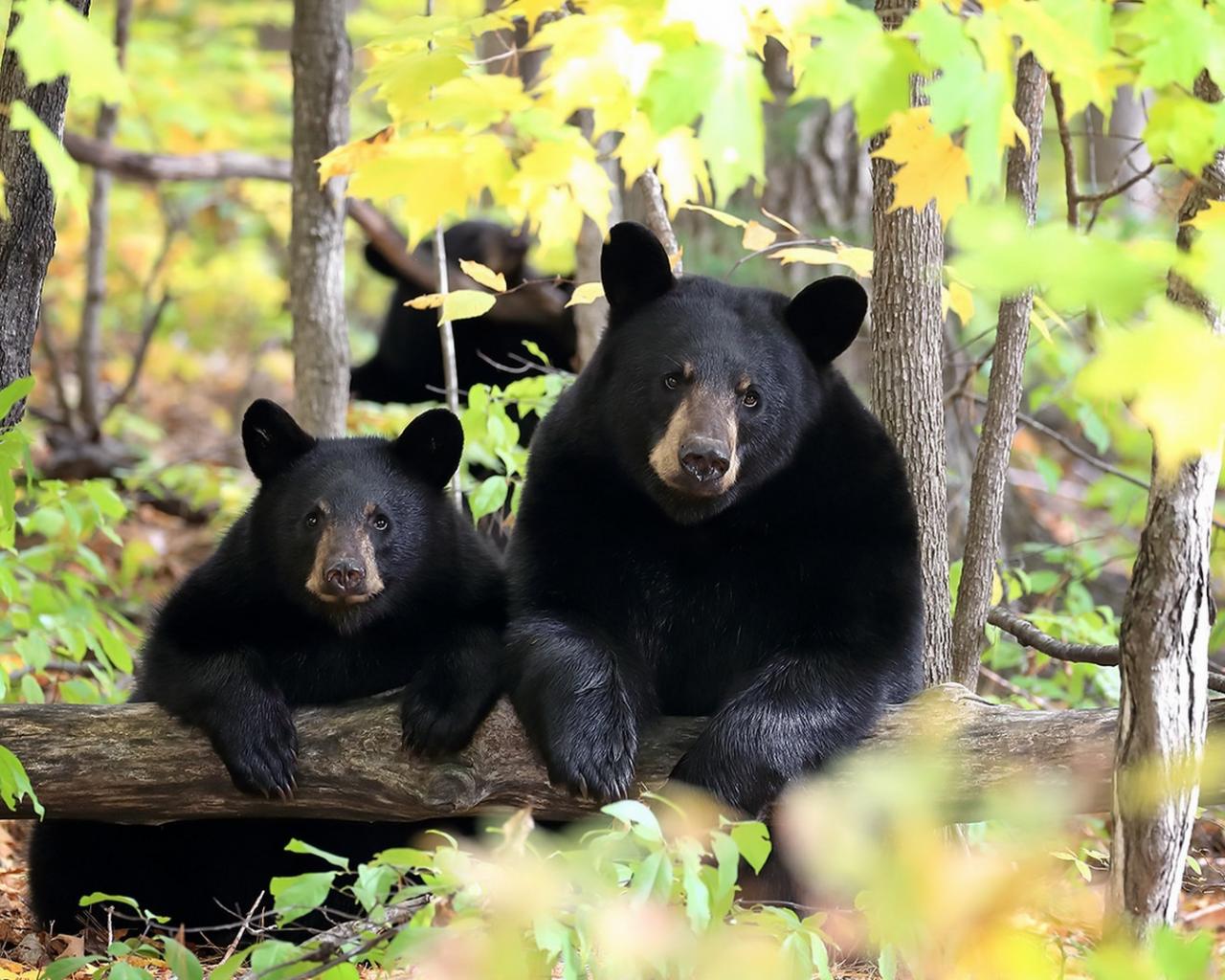 Wallpaper Two black bears in the forest