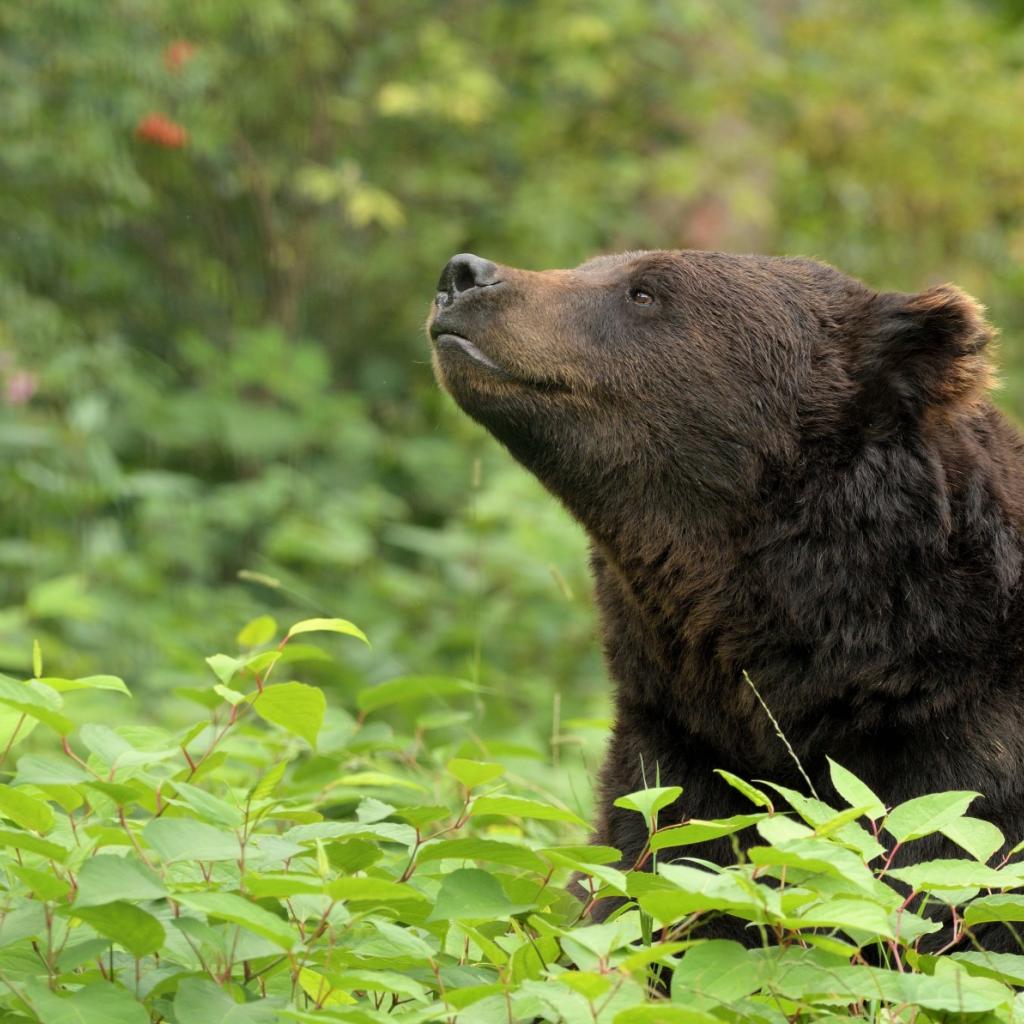 Wallpaper Brown bear sits in thickets in the forest