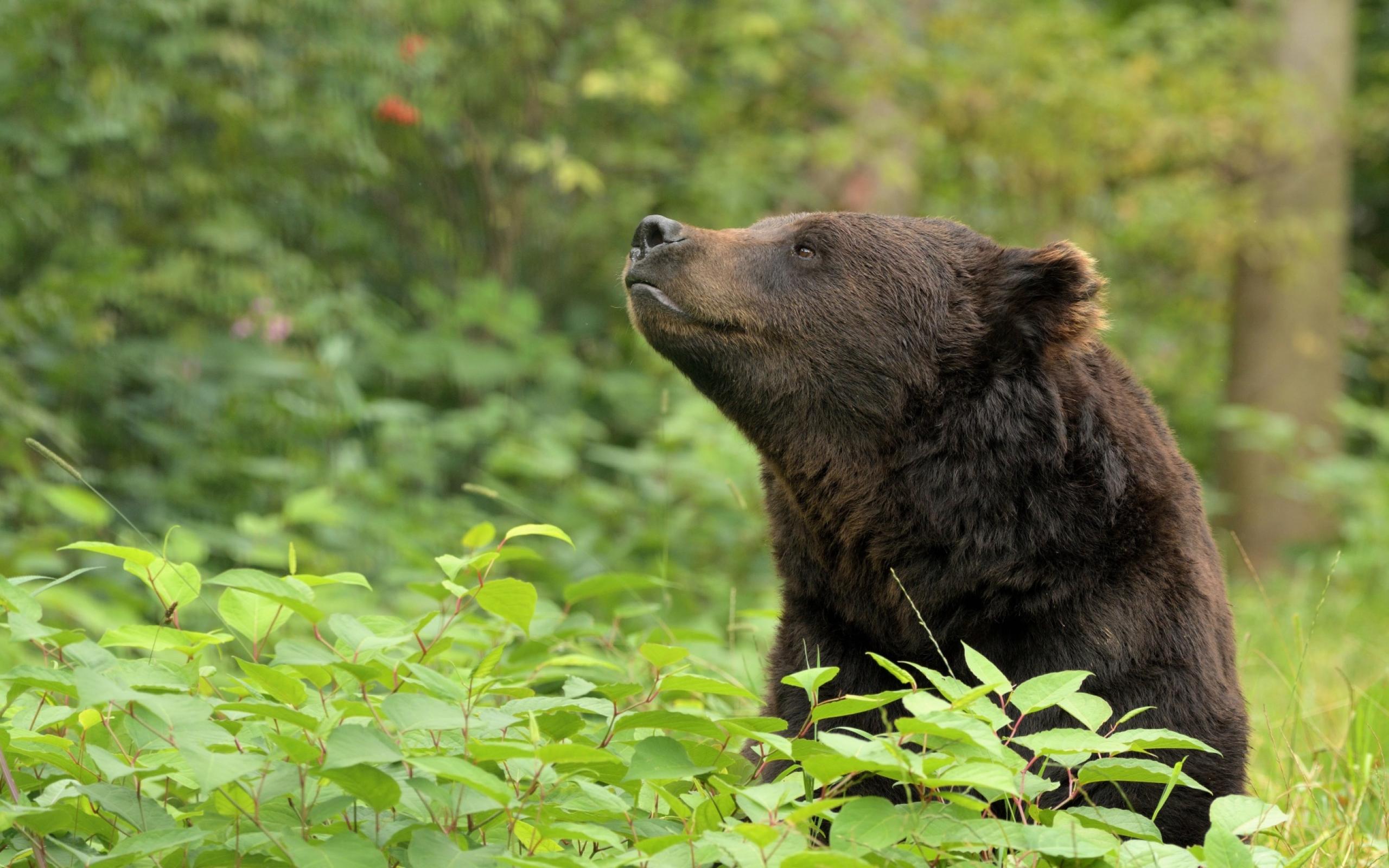 Wallpaper Brown bear sits in thickets in the forest