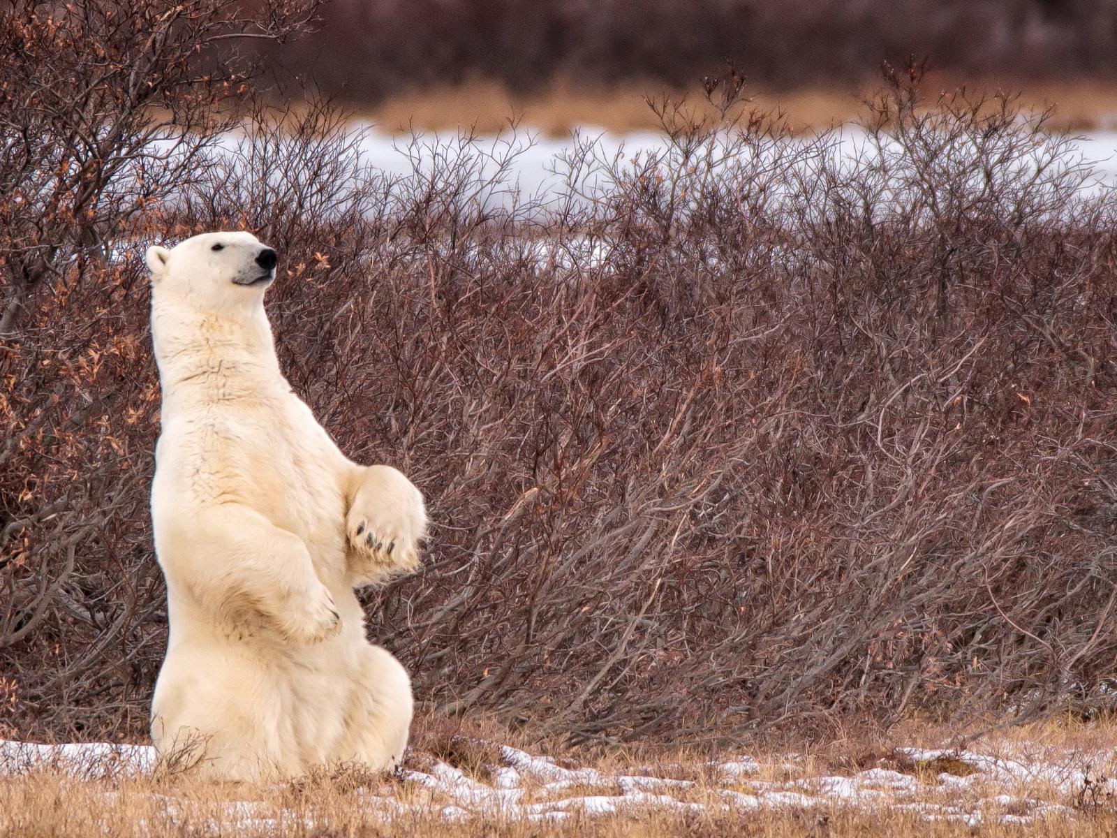 Wallpaper The polar bear sits on its hind legs