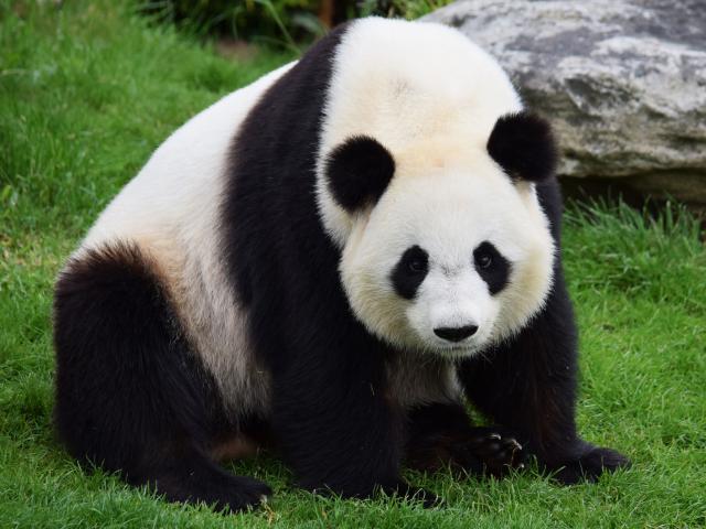 Wallpaper Big beautiful panda sitting on green grass