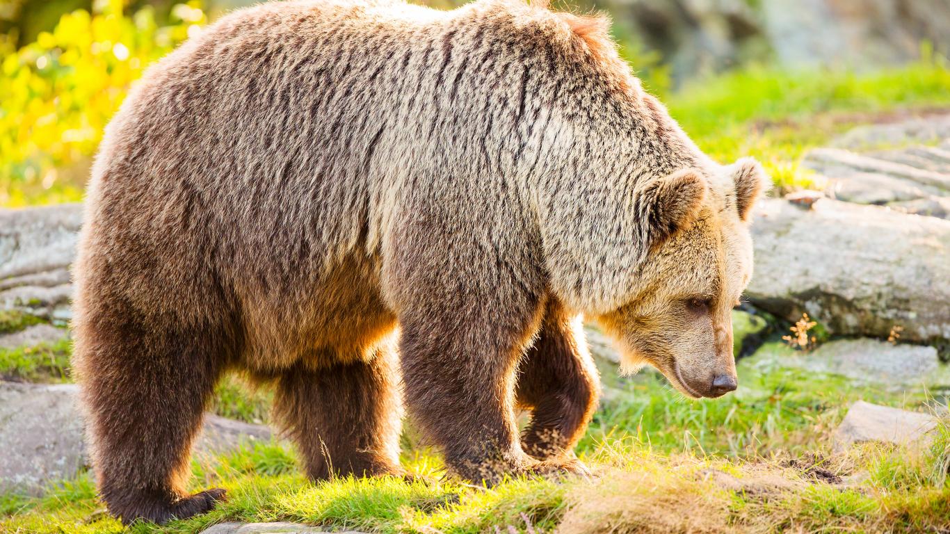 » Wallpaper Big brown bear walking on grass