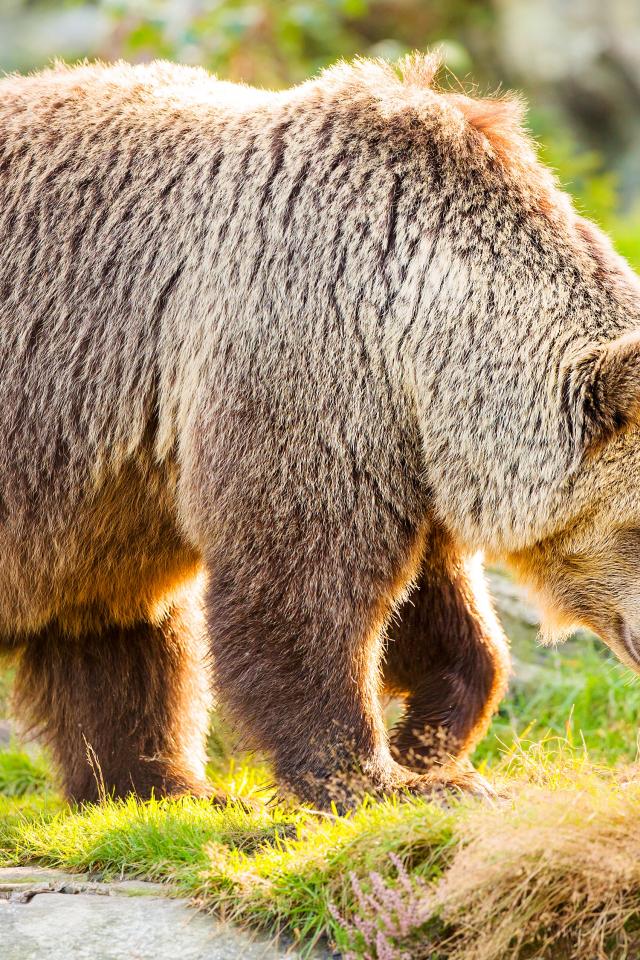 » Wallpaper Big brown bear walking on grass