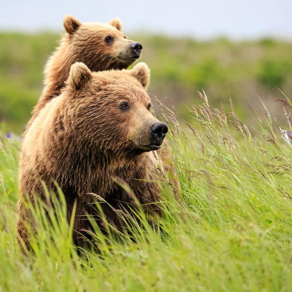 Wallpaper Big bear with a bear in the green grass