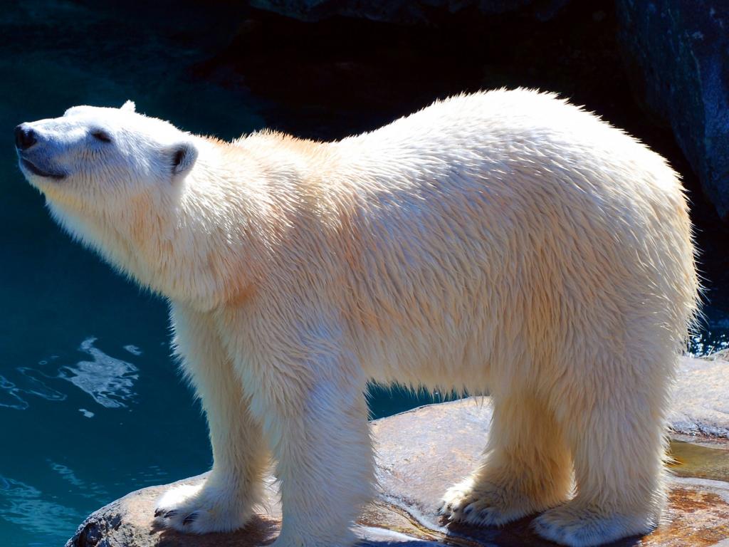 Wallpaper Polar bear in the zoo near the water