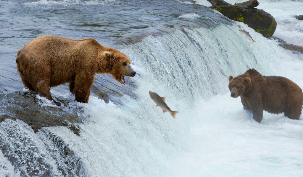 Wallpaper Bears catching fish
