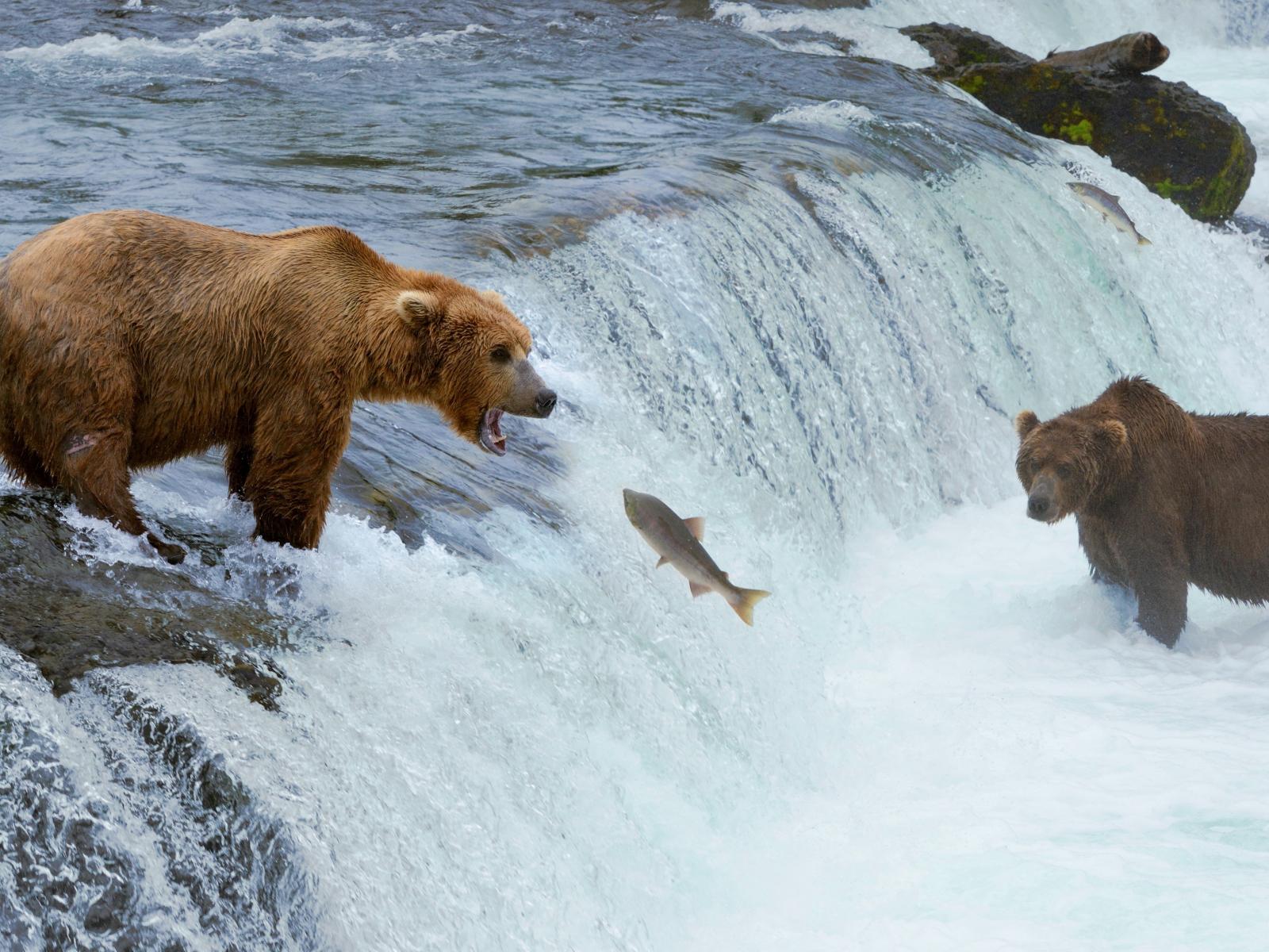 Wallpaper Bears catching fish