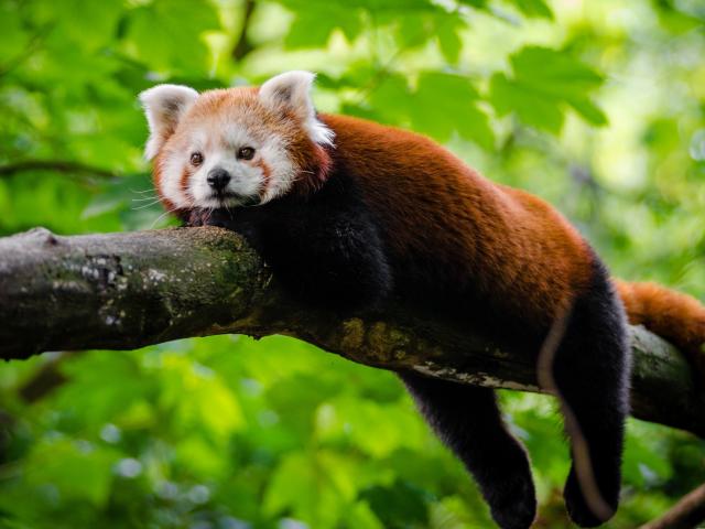 Wallpaper Small panda lies on a tree