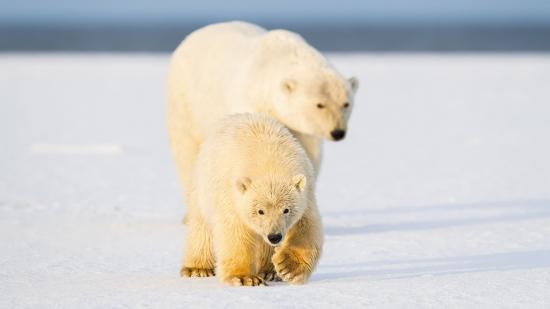 Wallpaper White bear with a bear with a bear cub in the snow