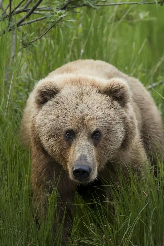 Wallpaper Big brown bear in the green grass