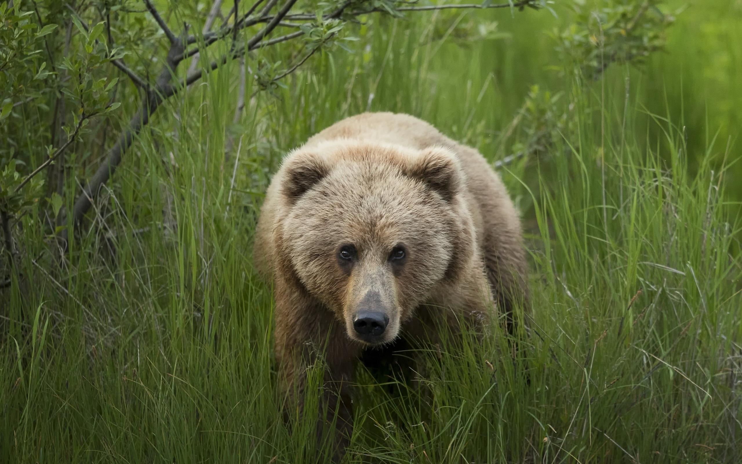 Wallpaper Big brown bear in the green grass