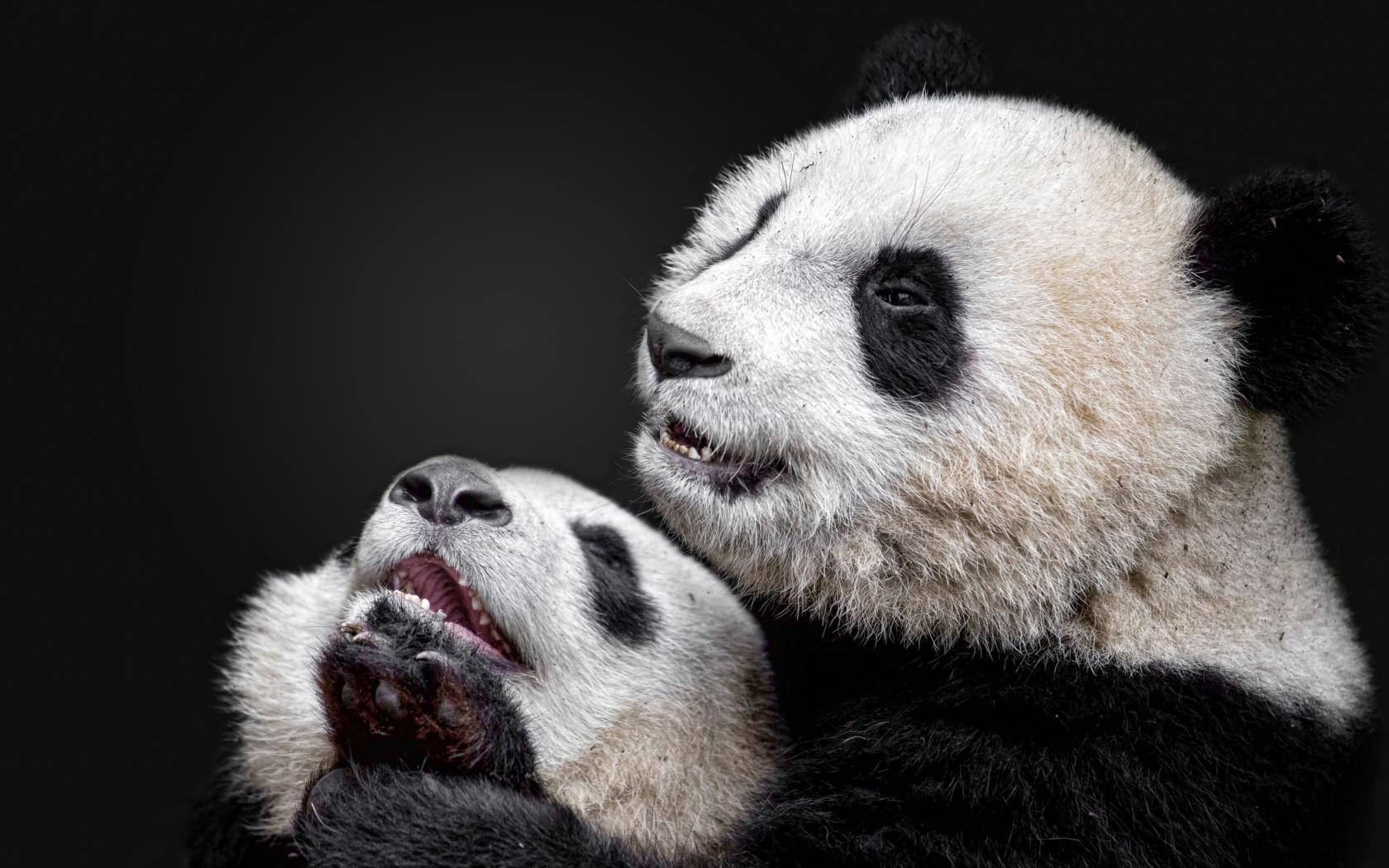 Wallpaper Two pandas on a gray background