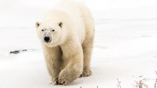 Wallpaper Big menacing white bear walking in the snow
