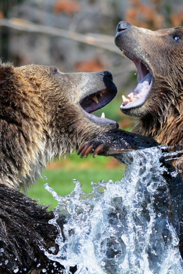 » Wallpaper Two bears fighting in the water