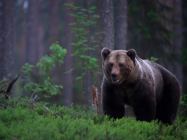 Wallpaper Big brown bear in a moss-covered forest