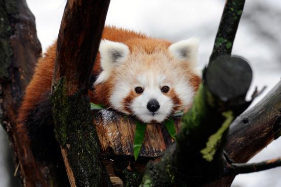 Wallpaper Red panda sleeping on a tree with his tongue out