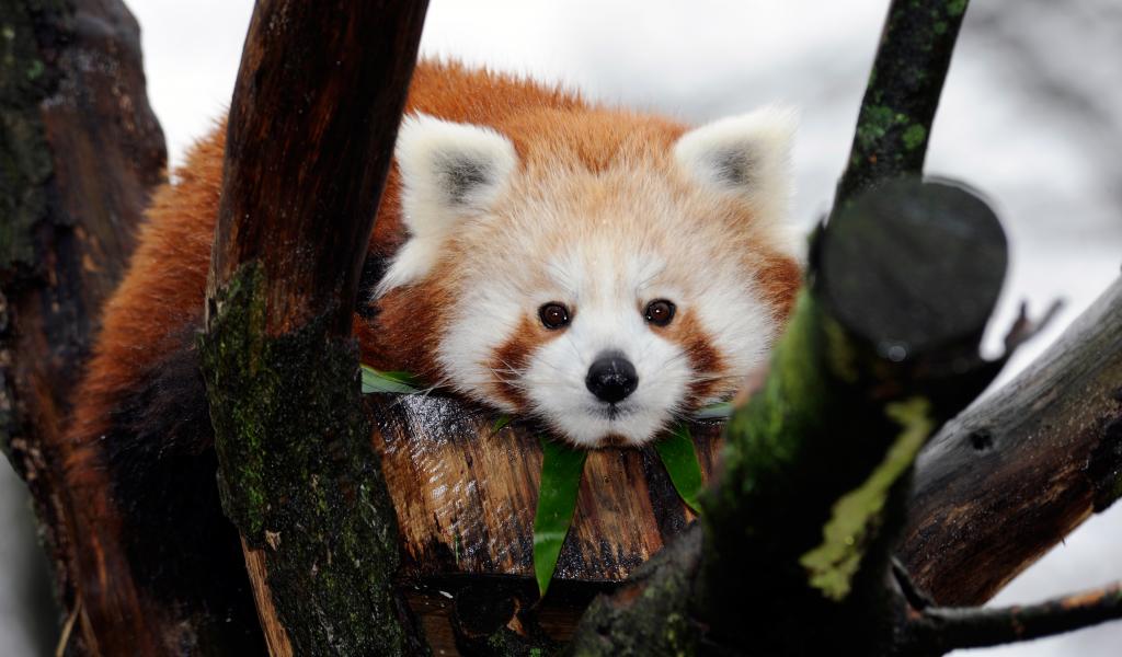 Wallpaper Small panda lies on a tree