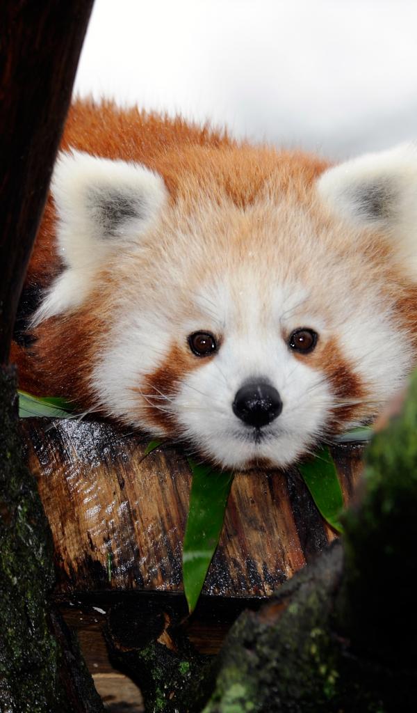 Wallpaper Red panda sleeping on a tree with his tongue out