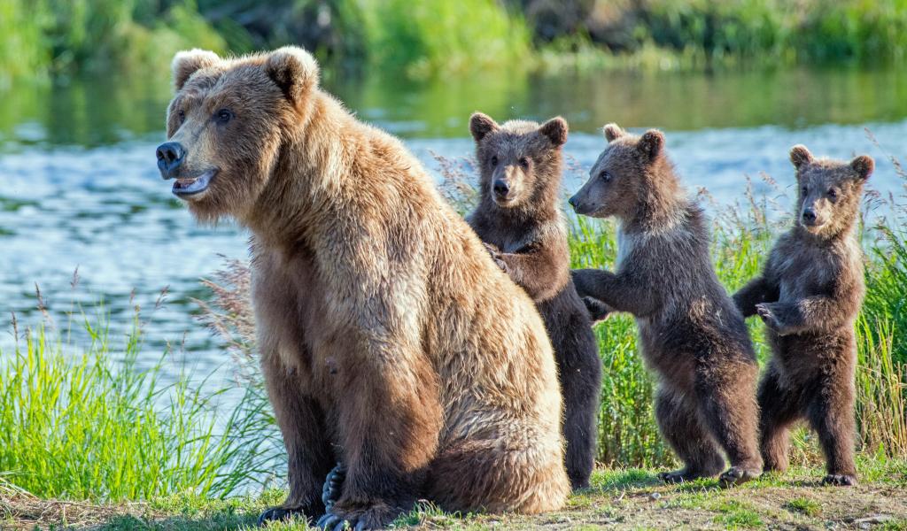 Wallpaper Big dipper with three little cubs by the river