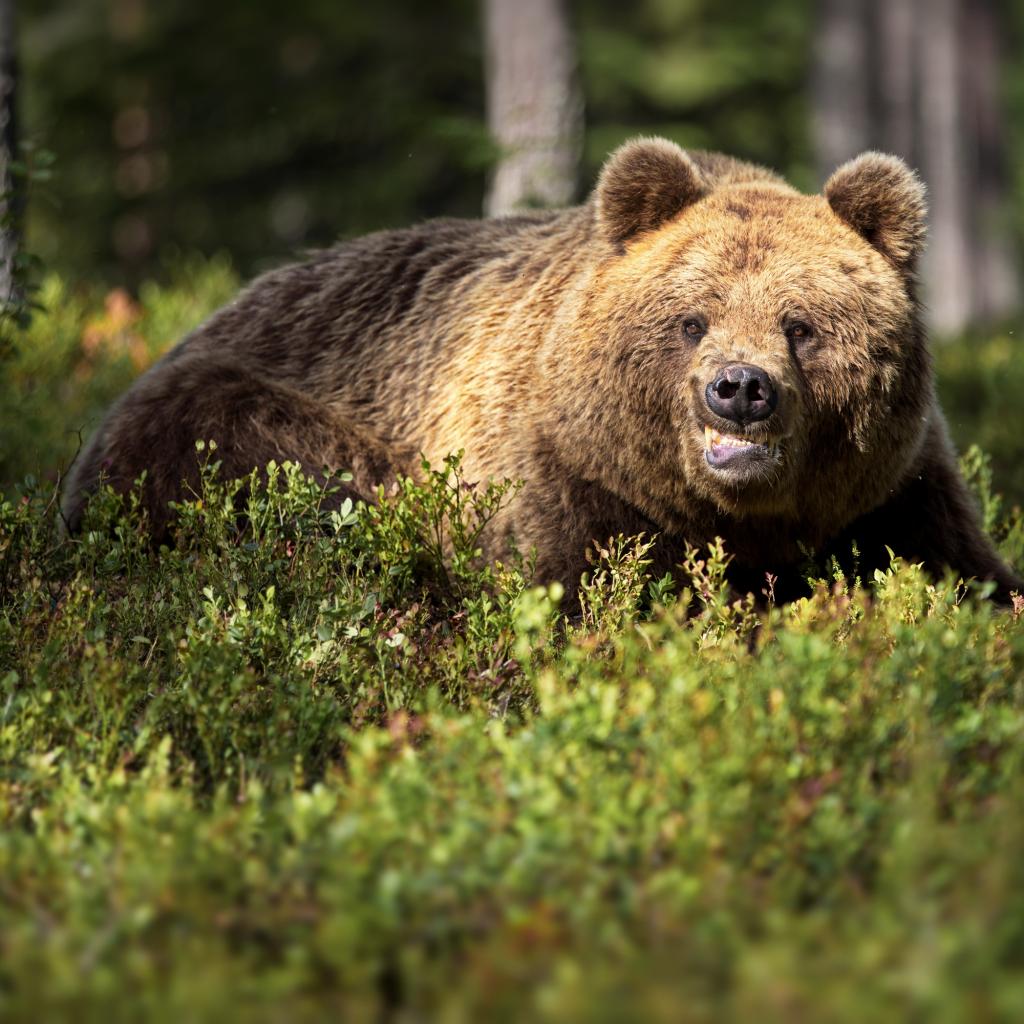 Wallpaper Terrible brown bear in the thicket in the forest