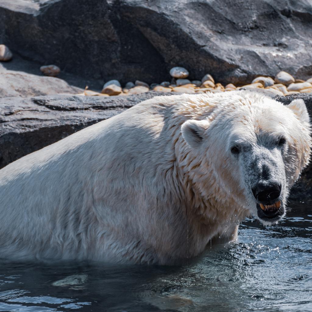 Wallpaper Big polar bear sits in the water at the zoo