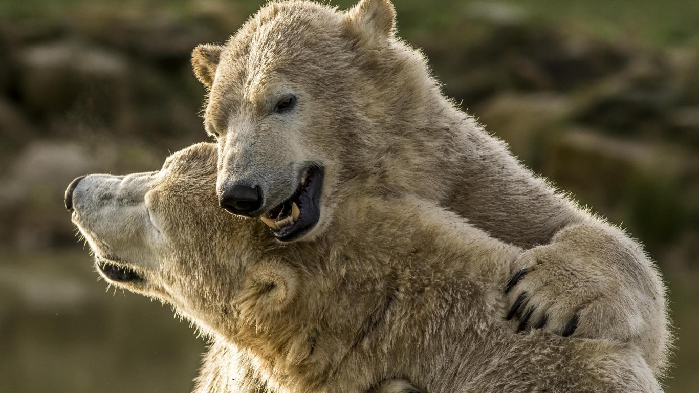 Wallpaper Two big polar bears cuddling