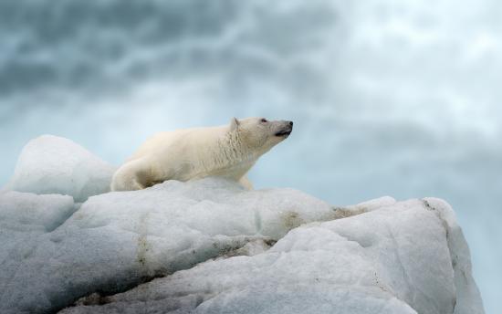Wallpaper Big polar bear lies on a cold ice floe