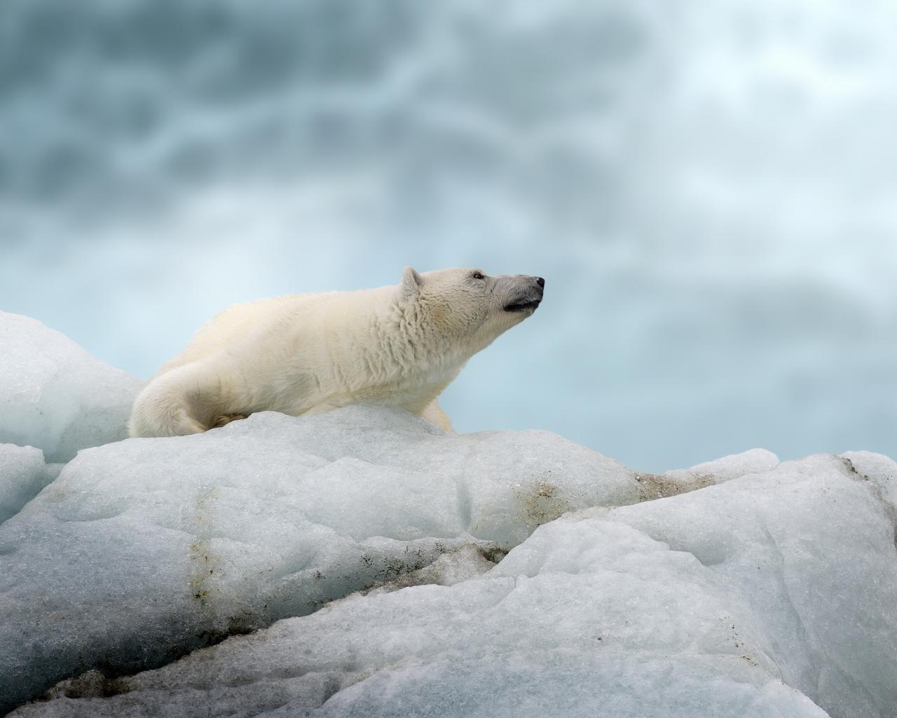 Wallpaper Big polar bear lies on a cold ice floe