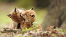 Wallpaper Two funny red pandas playing in the snow