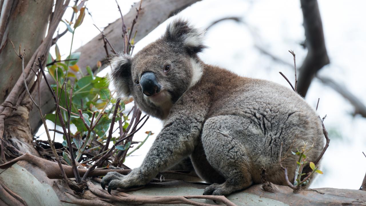 Wallpaper Big koala sitting on a tree branch