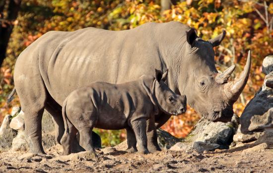 » Wallpaper Big rhinoceros with a small calf