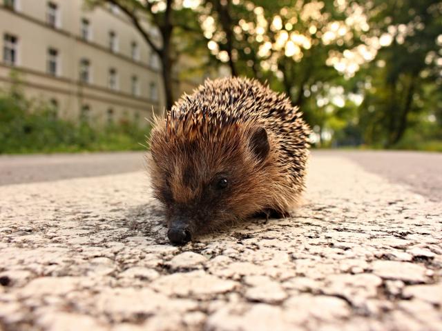 Wallpaper The spiny hedgehog is on the sidewalk