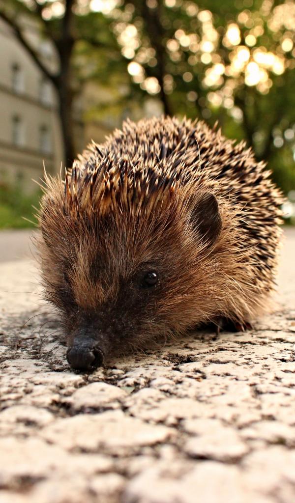 Wallpaper The spiny hedgehog is on the sidewalk