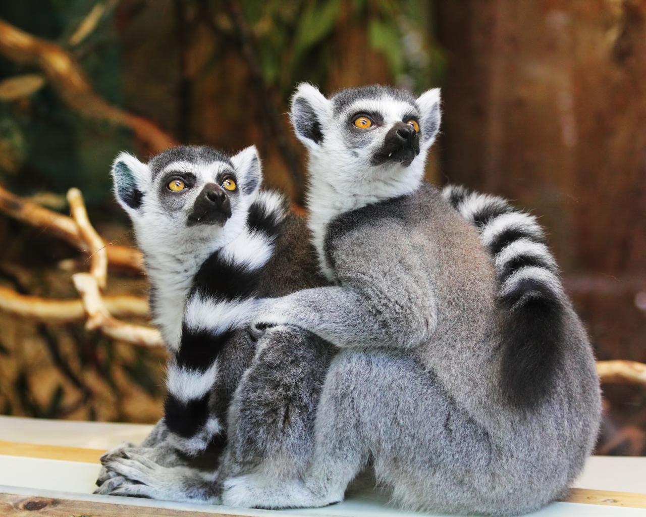 Wallpaper Two lemurs at the zoo are looking up