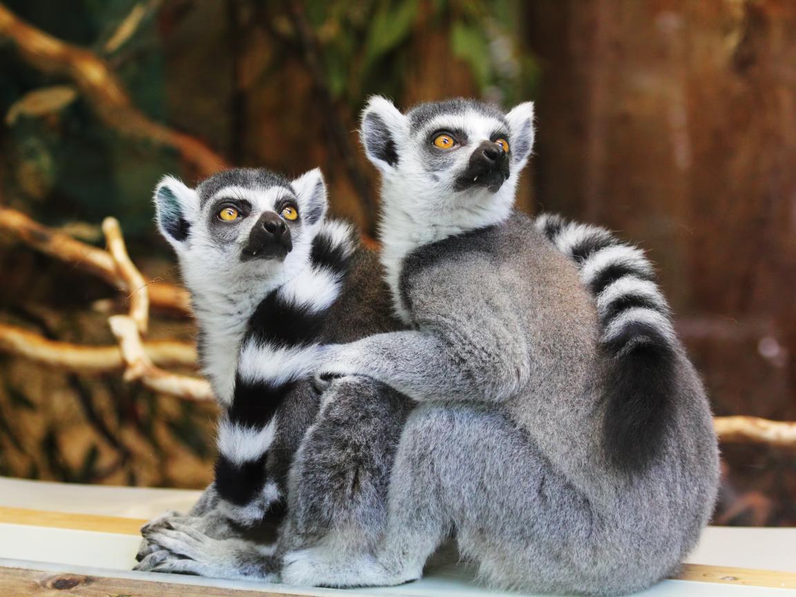Wallpaper Two lemurs at the zoo are looking up
